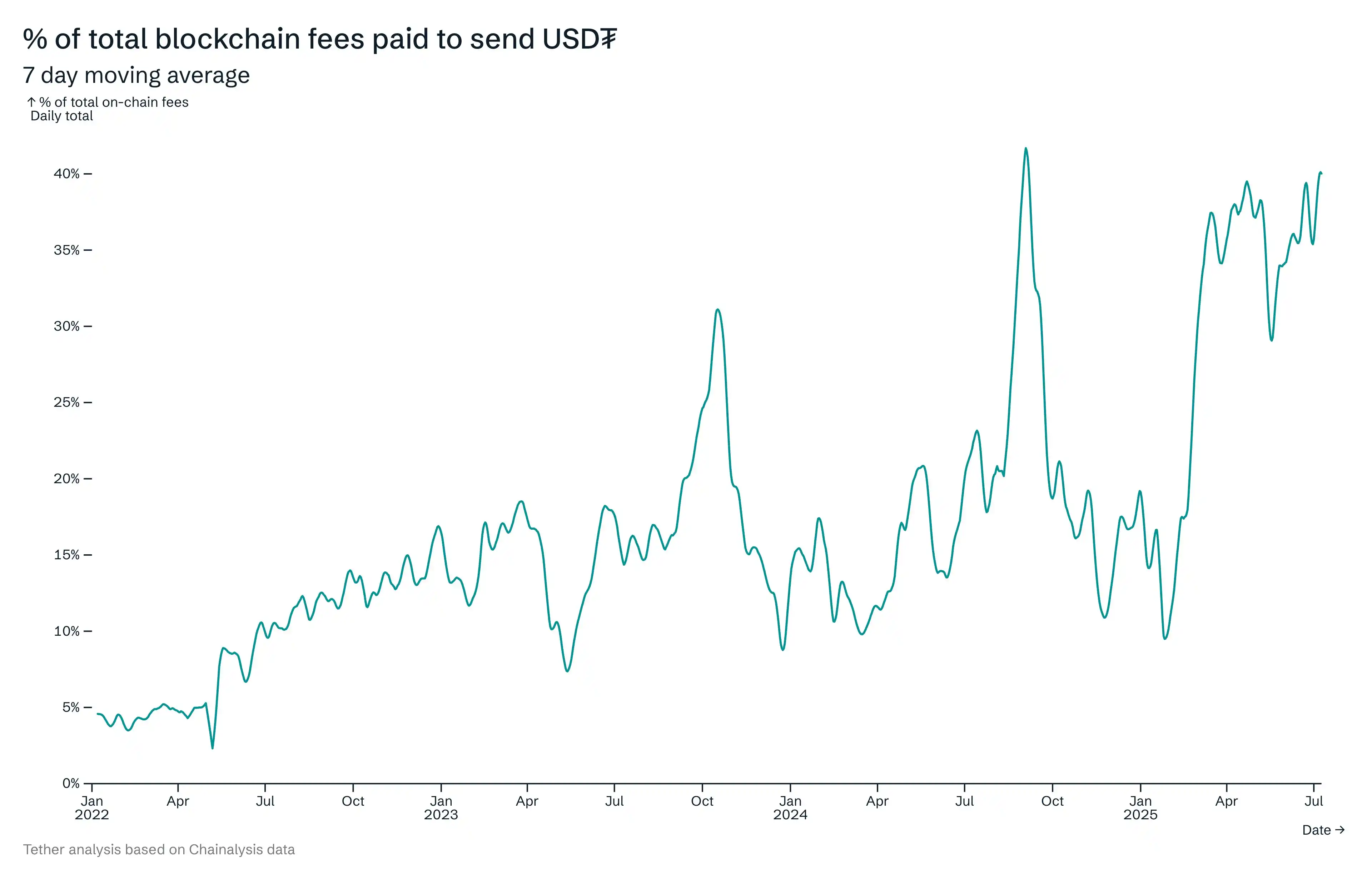 BlockBeats 訊息,8 月 6 日,Tether CEO Paolo Ardoino 發文揭露,「全網 40% 的區塊鏈手續費都是用來 USDT 轉帳。這涵蓋了 9 條鏈:以太坊、波場、TON、Solana、BSC、Avalanche、Arbitrum、Polygon 和 Teimism、波場、TON、Solana、BSC、Avalanche、Arbitrum、Polygon 和數億人每天。的數位美元 USDT,以保護家人免受本幣貶值和通貨膨脹的影響。